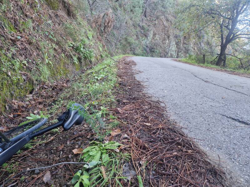 Ik had mijn ritje zelfs goed voorbereid door in Komoot een route te maken met zo weinig mogelijk verkeer. In 8 km slingert de weg met een fijn stijgingspercentage van 4% langs de bergflank naar het witte dorpje Istan. Het dorpje ligt te baden in de zon op de beboste helling. Ik geniet ! Na het dorpje wordt de weg smaller; een bordje geeft aan "pista forestal". Ha leuk, denk ik nog. Een wat avontuurlijkere weg door de natuur! Een paar mountainbikers komen uit tegengestelde richting. Hola! Met 15 graden Celsius is het voor hun het winter, maar ik rij optimistisch kort-kort hoewel ik wel merk dat de stukken in de schaduw wat fris aanvoelen. Plotseling- uit het niets na een bocht naar rechts- zwiept mijn achterwiel naar links. Ik denk nog aan een lekke band; probeer de fiets onder controle te houden. Maar er is geen houden aan; ik maak nog een zwieper en duikel van de huurfiets af en land hard op mijn linker flank. Daar lig ik dan; op een stil weggetje in een bos. Pijn! Ik kan niet direct omhoogkomen en heb meteen de ernst van de situatie door.