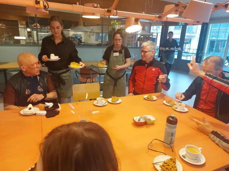Wat was de ontvangst weer hartelijk, de koffie perfect en het gebak geweldig. Je zou bijna nu al verlangen naar de Soeprit. Jazeker serveerster Nikki en collega’s, in het najaar bij de afsluiting van het seizoen komen we weer bij jullie. Maar eerst gaan we eens goed genieten van het komende fietsseizoen.