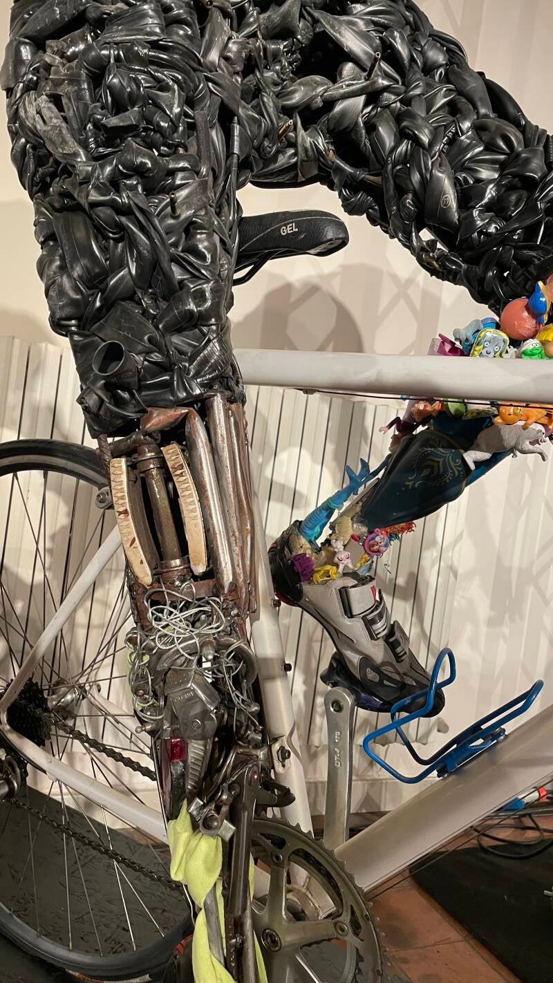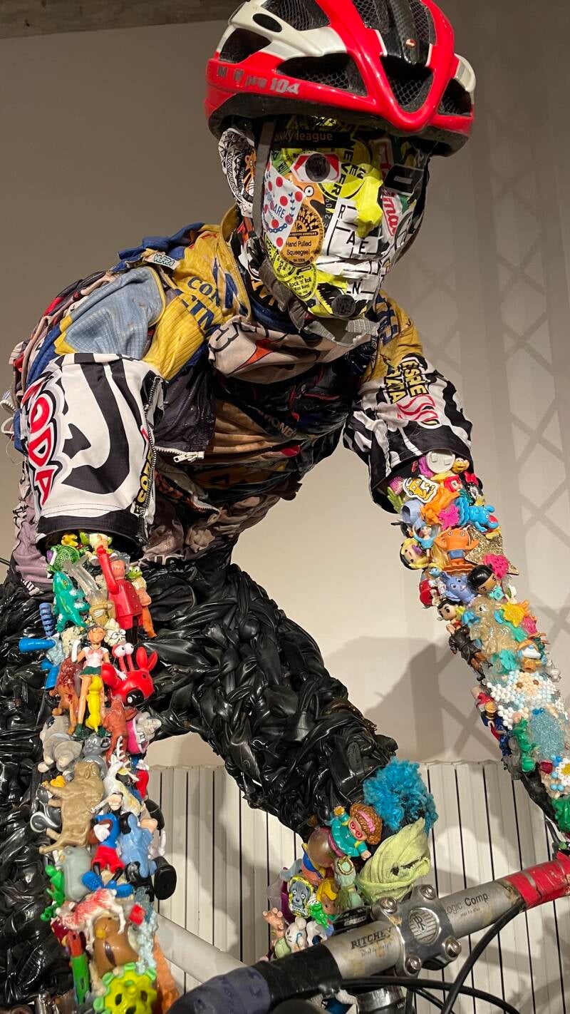 Maar veel spectaculairder waren de kunstwerken van (anonieme) sporters, gemaakt van afval- en restmaterialen die gerelateerd zijn aan die sport. Denk aan leerresten van een bal, resten van sportkleding, fietsbanden, kettingen en trappers van een fiets etc. Niet zonder reden heet de expositie “De mooie en de nuttige kant van restmaterialen”.