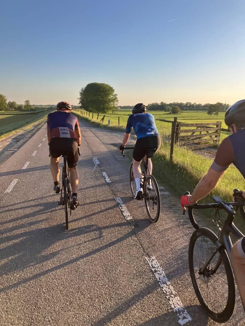 Met een grote groep gingen we op stap. Er werd lekker doorgefietst maar volgens mij kon iedereen het tempo prima bijhouden. Ik reed redelijk vooraan en hoorde achter mij het geroezemoes vanuit het peloton, dus iedereen had kennelijk nog genoeg adem over om te kletsen.