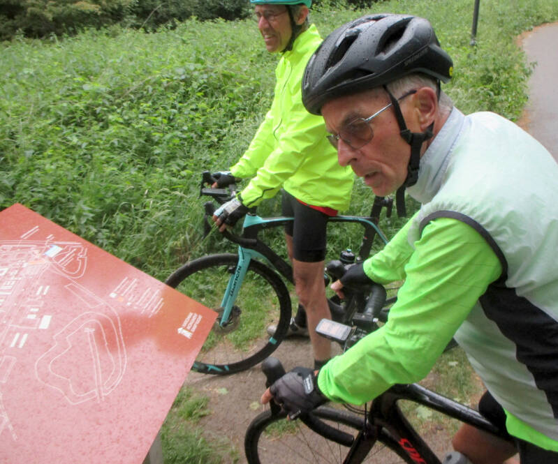 Als we weer opstappen begint het te druppelen. Nee, ik mopper niet, de grond smacht naar water en vrolijk gaan we verder langs vennen en meren. In Vught stoppen we even bij de gevangenis, een groot complex waar ik onwillekeurig omhoog kijk, waar kun je met een heli worden opgehaald?