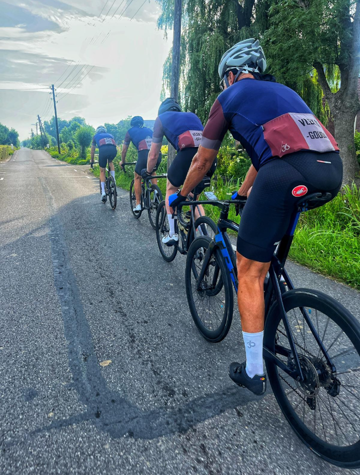 Laten we niet vergeten dat er ook nog werd gefietst. En wel in zowel T25 en T28 tempo! Drie fijne rondjes in de omgeving van Gouda. Uw verslaggever reed zowel met T25 mee (2 keer) als met T28. Alles in het kader van een betrouwbare verslaglegging, zullen we maar zeggen.